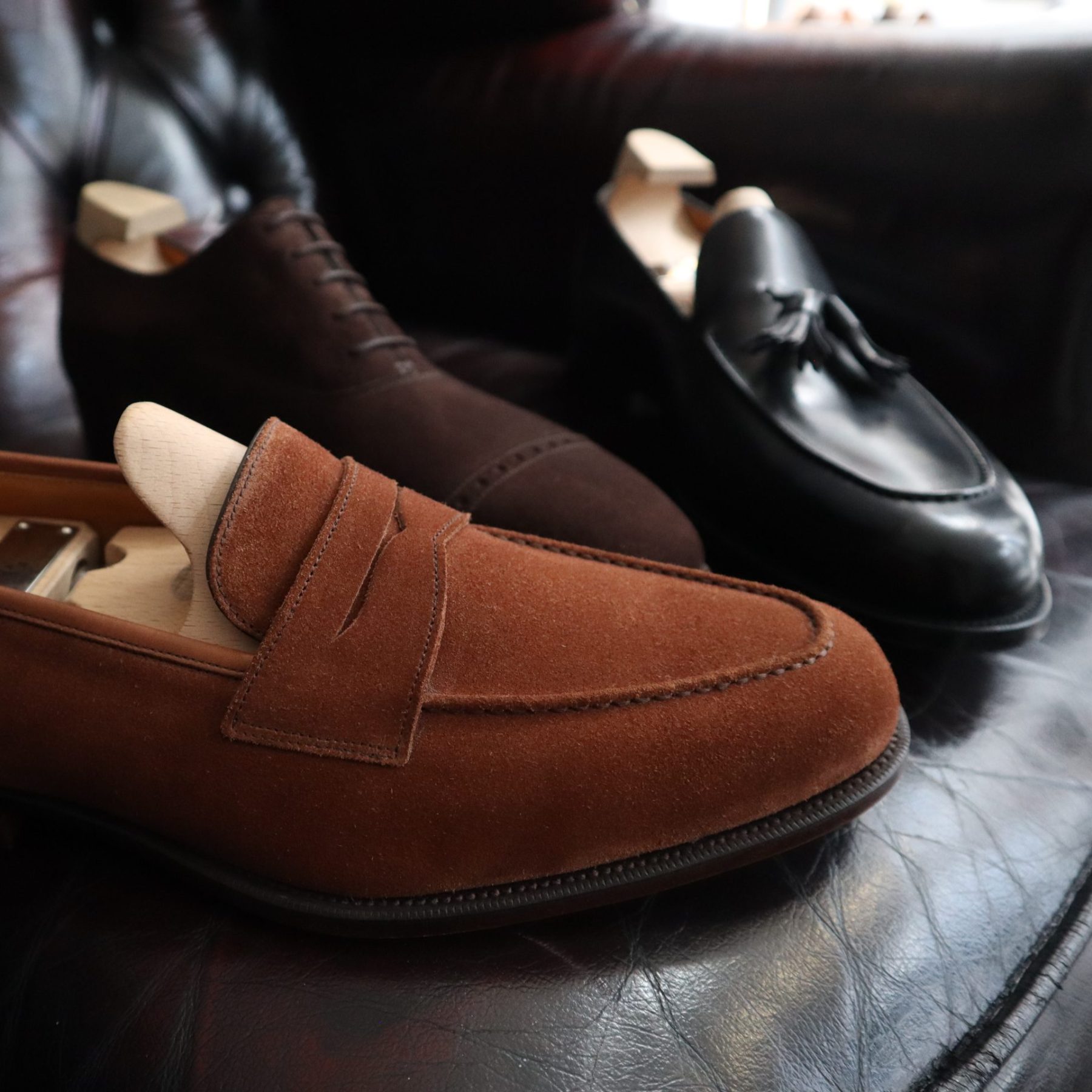 The Eden takes its inspiration from the Corniche model. Updated using the round toe C39 loafer last and available in Mink Suede and Black Calf. If you want this in another colour or width, use the Corniche model in Made to Order and choose the C39 toe shape.